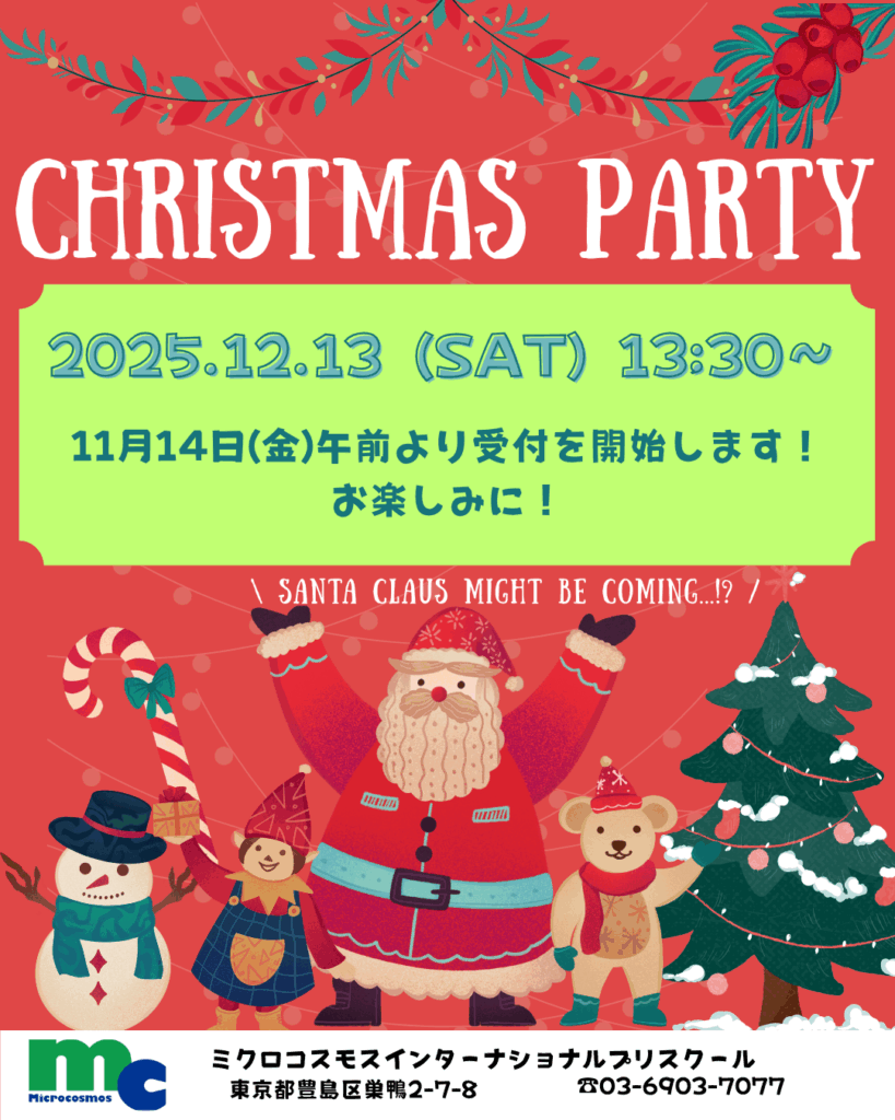 2025年12月13日(土)13:30より、クリスマスパーティーを開催します!